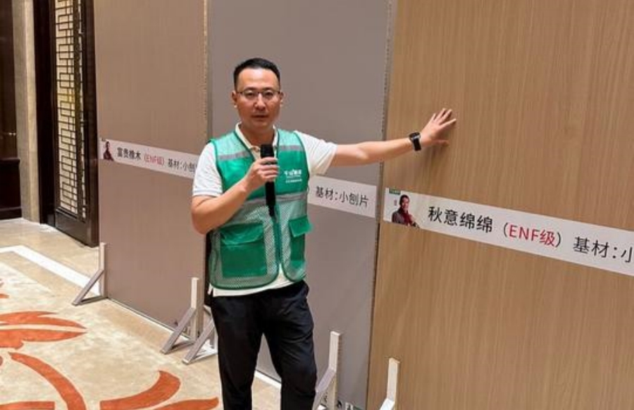 下午2點,千山新品發(fā)布會開始。千山板材南大區(qū)經(jīng)理滿彬分享了千山板材對產(chǎn)品的不斷鉆研與創(chuàng)新,對產(chǎn)品質量的嚴格把控,只希望為消費者帶來健康、環(huán)保的家,讓消費者過得舒心、安心。