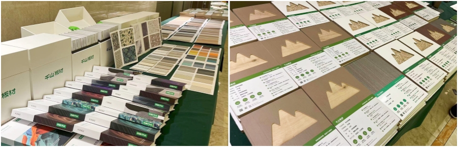 千山板材華南區(qū)大區(qū)經(jīng)理倪磊為大家詳細(xì)介紹了千山的產(chǎn)品體系、2024年6大系列花色以及千山板材在環(huán)保、工藝等方面的產(chǎn)品優(yōu)勢(shì),讓嘉賓們對(duì)千山有了更深入的了解。