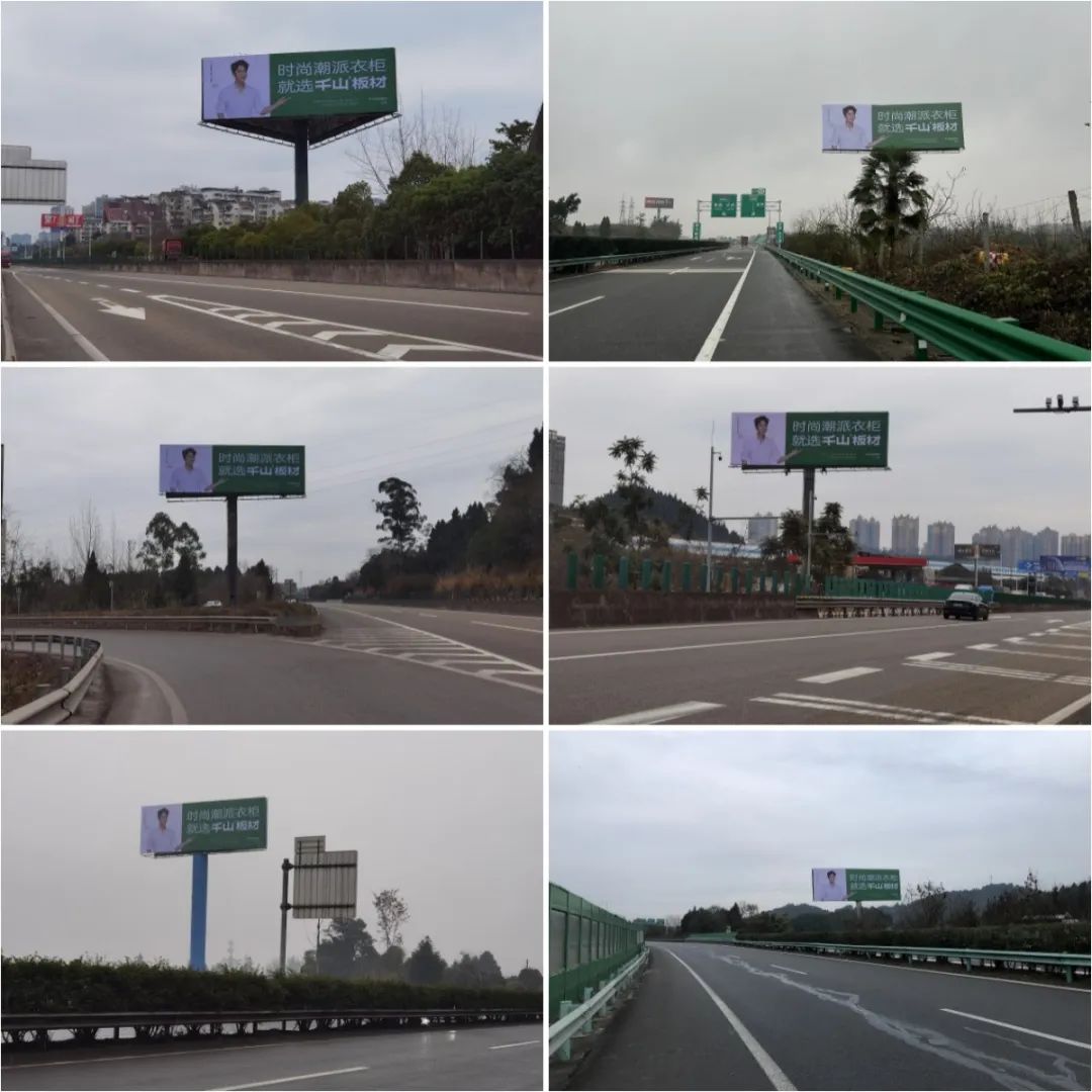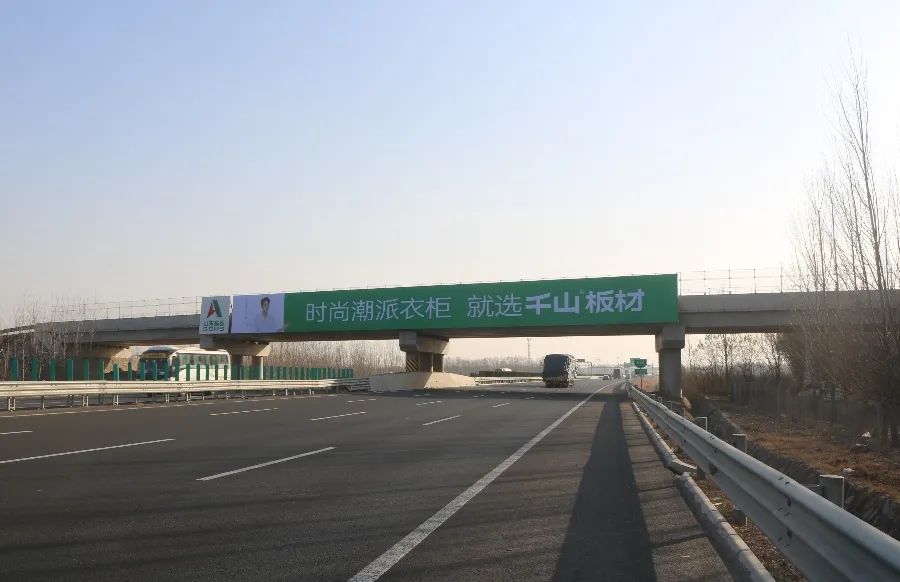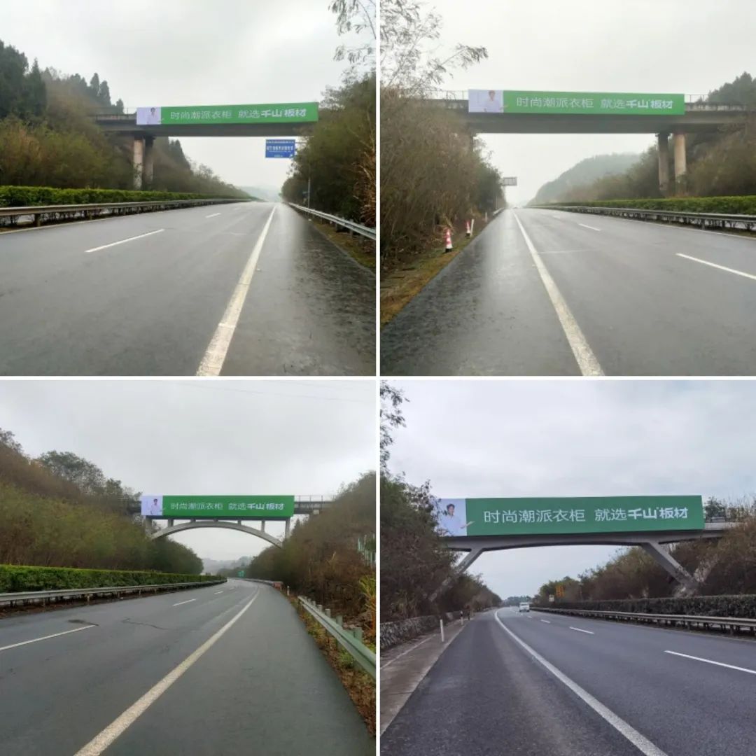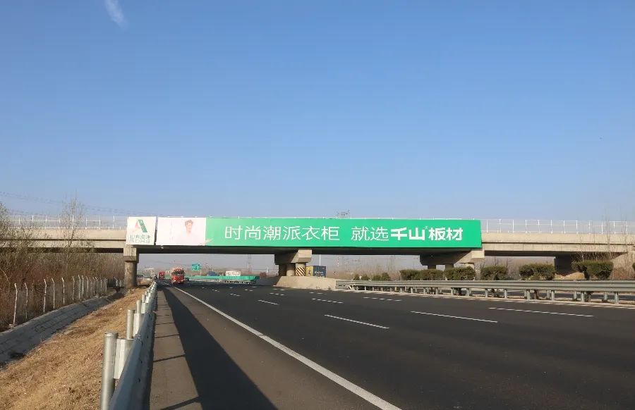 本次高速廣告形式依舊涵蓋跨線橋、單立柱,以千山2.0品牌色調(diào)綠色為主色調(diào),展示了全新品牌代言人李晨以及全新品牌LOGO。廣告畫面鮮艷、美觀、簡潔,進(jìn)一步將“時(shí)尚潮派衣柜 就選千山板材”的品牌主張傳遞給更多的消費(fèi)者。