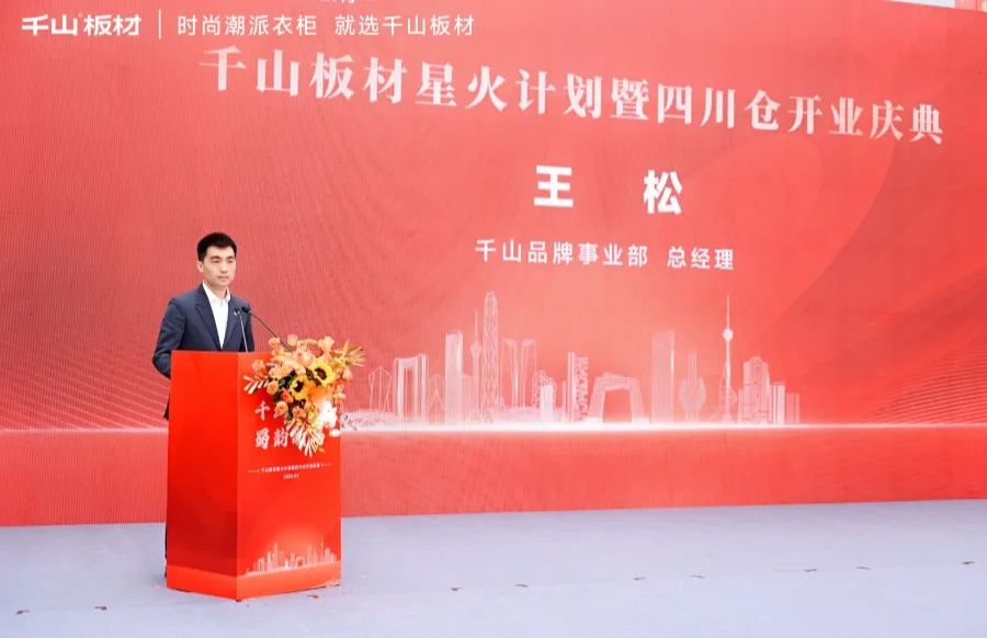 千山品牌事業(yè)部總經(jīng)理王松發(fā)表致辭。王總表示,四川倉的開業(yè),是繼山東倉之后,千山板材發(fā)展歷程中又一重要的里程碑,也是千山板材在四川發(fā)展的全新起點。千山將以此為契機,加強與四川區(qū)域所有合作伙伴的溝通與合作,實現(xiàn)品牌和銷量的雙提升。