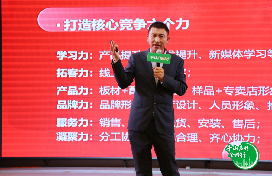 千山板材區(qū)域經(jīng)理高平紅對(duì)千山的成長歷程、品牌升級(jí)戰(zhàn)略、產(chǎn)品優(yōu)勢(shì)進(jìn)行詳細(xì)介紹。千山板材在全國已擁有1000+品牌專賣店,快速發(fā)展的背后,是千山與全國合作伙伴的緊密協(xié)作、攜手共進(jìn)。