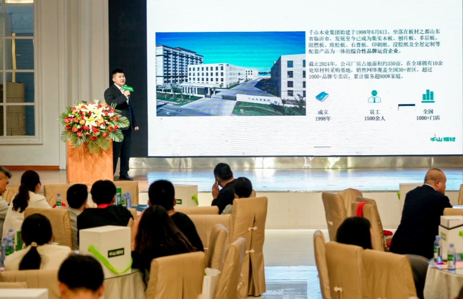 千山板材銷(xiāo)售部總監(jiān)董向陽(yáng)上臺(tái)致辭。董總表示,千山堅(jiān)定品牌高端化發(fā)展方向,堅(jiān)定產(chǎn)品研發(fā)投入,堅(jiān)定營(yíng)銷(xiāo)渠道精進(jìn)!站在全面發(fā)展的新階段,千山已做好充足準(zhǔn)備,和伙伴們一起迎接挑戰(zhàn),合作共贏。