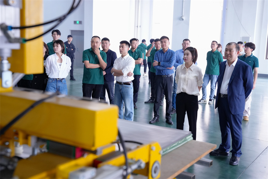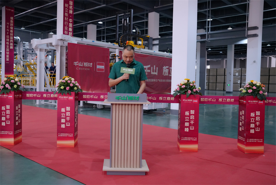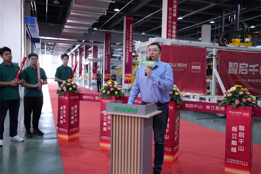 在消費(fèi)升級(jí)的大浪潮下,市場(chǎng)對(duì)板材的品質(zhì)、環(huán)保及個(gè)性化需求日益提升。溫康納生產(chǎn)線的引入,正是千山響應(yīng)市場(chǎng)趨勢(shì)、賦能集團(tuán)發(fā)展、共同為終端客戶創(chuàng)造價(jià)值的有力舉措。千山板材將攜手全國經(jīng)銷商,將這份“技術(shù)領(lǐng)先”優(yōu)勢(shì),轉(zhuǎn)化為強(qiáng)勁的市場(chǎng)競(jìng)爭(zhēng)力。 聚焦于生產(chǎn)制造環(huán)節(jié)的革新,邱總表示:德國溫康納生產(chǎn)線以高度自動(dòng)化、精細(xì)化、智能化和穩(wěn)定性著稱。它的引入,將大幅提升效能、加碼品質(zhì),確保千山板材的出廠產(chǎn)品具備高端品質(zhì)的一致性,這也是千山踐行“品質(zhì)過硬”’承諾最堅(jiān)實(shí)的保障。
