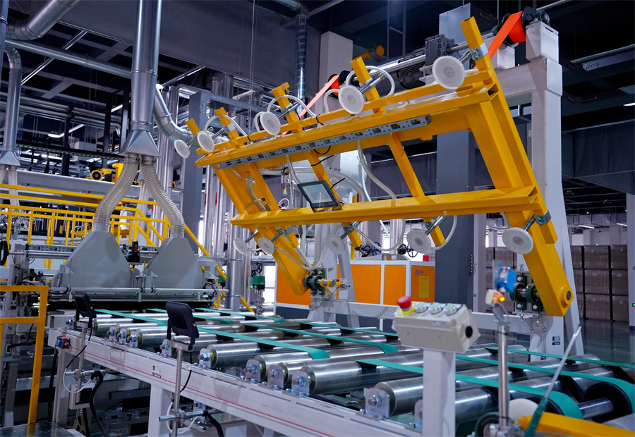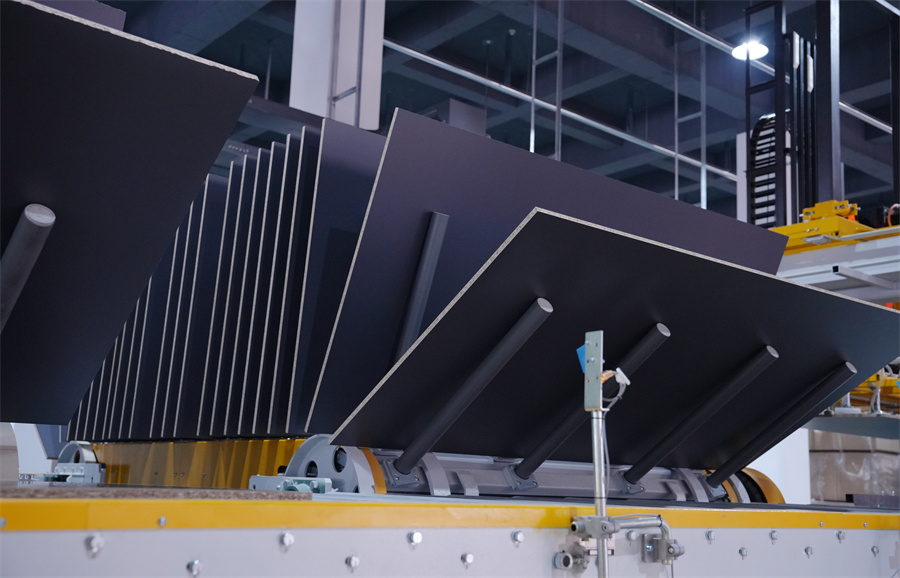 作為“壓貼領(lǐng)域的領(lǐng)導(dǎo)者”,溫康納在短周期壓貼領(lǐng)域處于世界領(lǐng)先地位,占據(jù)了國內(nèi)高端市場(chǎng)。相比于傳統(tǒng)壓貼產(chǎn)線數(shù)分鐘的周期,溫康納產(chǎn)線的壓貼周期大幅壓縮,效率提升數(shù)倍以上,產(chǎn)能可達(dá)到4800張/20小時(shí)。 溫康納智能化產(chǎn)線實(shí)現(xiàn)全流程自動(dòng)化無縫銜接,從自動(dòng)上下料、自動(dòng)進(jìn)板裝置到壓機(jī)壓貼、清邊倒角、翻板檢驗(yàn)等,每個(gè)環(huán)節(jié)都實(shí)時(shí)調(diào)控。更令人驚嘆的是紅外激光精準(zhǔn)對(duì)紋系統(tǒng),將誤差嚴(yán)格控制在毫米級(jí)以內(nèi),使板材紋理對(duì)接的美觀度實(shí)現(xiàn)質(zhì)的飛躍。 溫康納生產(chǎn)線保證了板材在最大壓貼范圍內(nèi)材料之間的最小厚度差,能夠更靈活地使用基材,同時(shí)確保產(chǎn)品質(zhì)量的穩(wěn)定性。溫康納的精密與進(jìn)口鋼板“珠聯(lián)璧合”,將使千山板材潮流花色達(dá)到行業(yè)新高度,實(shí)現(xiàn)高顏、高質(zhì)、高品體驗(yàn)。 溫康納生產(chǎn)線的引進(jìn)是千山智能制造戰(zhàn)略的重要組成部分。在消費(fèi)升級(jí)和產(chǎn)業(yè)轉(zhuǎn)型的大背景下,千山并沒有選擇簡(jiǎn)單擴(kuò)大產(chǎn)能的道路,而是通過引進(jìn)頂尖技術(shù)裝備,實(shí)現(xiàn)從“制造”到“智造”的跨越。