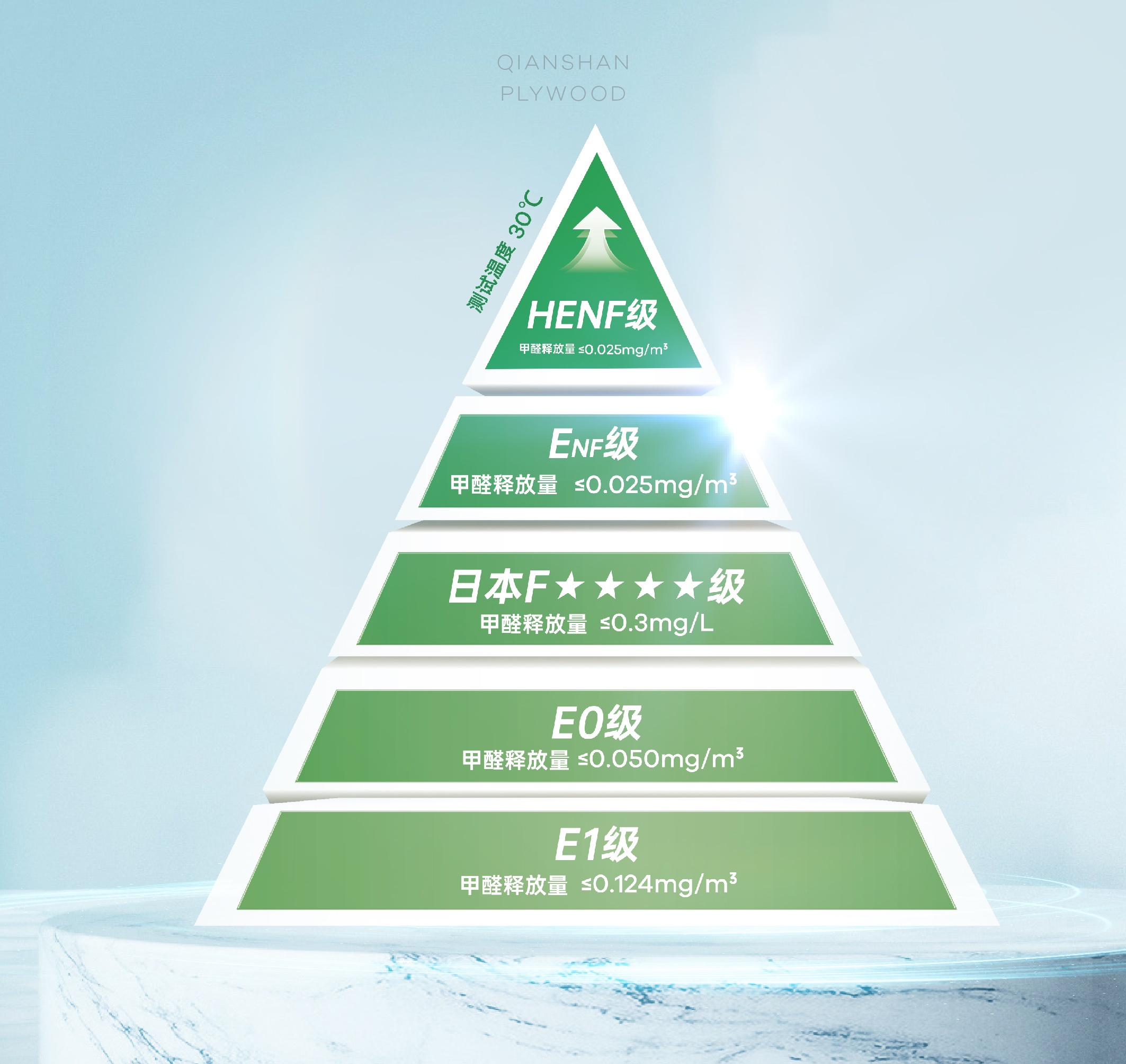 傳統(tǒng)板材環(huán)保標(biāo)準(zhǔn)多聚焦于常溫環(huán)境下的甲醛釋放量,而HEnf級的甲醛釋放量在30℃熱環(huán)境下被嚴(yán)格限制在0.025mg/m3以內(nèi),是中國林產(chǎn)工業(yè)協(xié)會于2022年5月31日發(fā)布的《采暖用人造板及其制品中甲醛釋放限量》(T/CNFPIA 1003-2022)標(biāo)準(zhǔn)中的最高等級。HENF級:環(huán)保的升級躍遷千山板材四大品類: