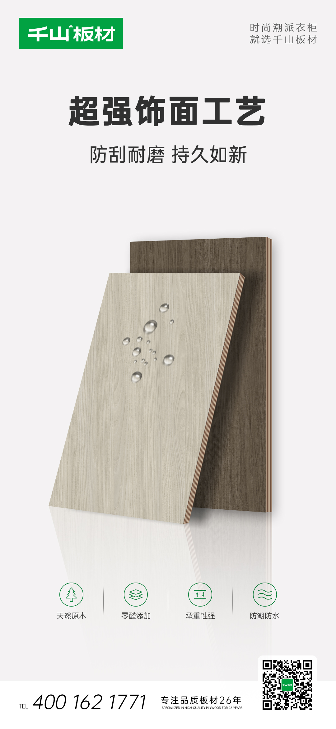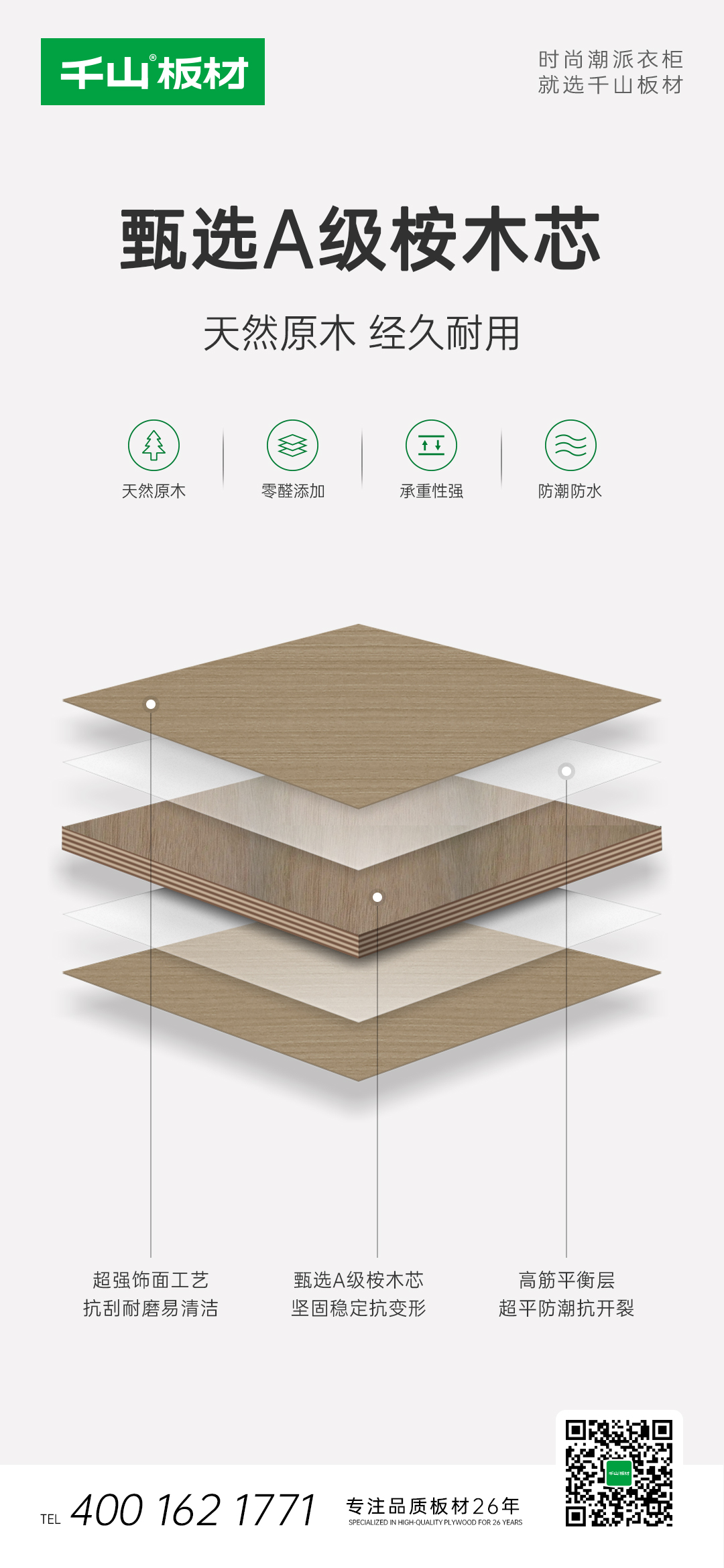 好的背板不但可以讓柜子更加穩(wěn)固,還可以起到防潮防霉的作用,所以背板的使用至關(guān)重要。千山板材實木多層背板配置4.6厘/5厘/7厘/9厘等多種規(guī)格,充分滿足多樣化的產(chǎn)品需求。