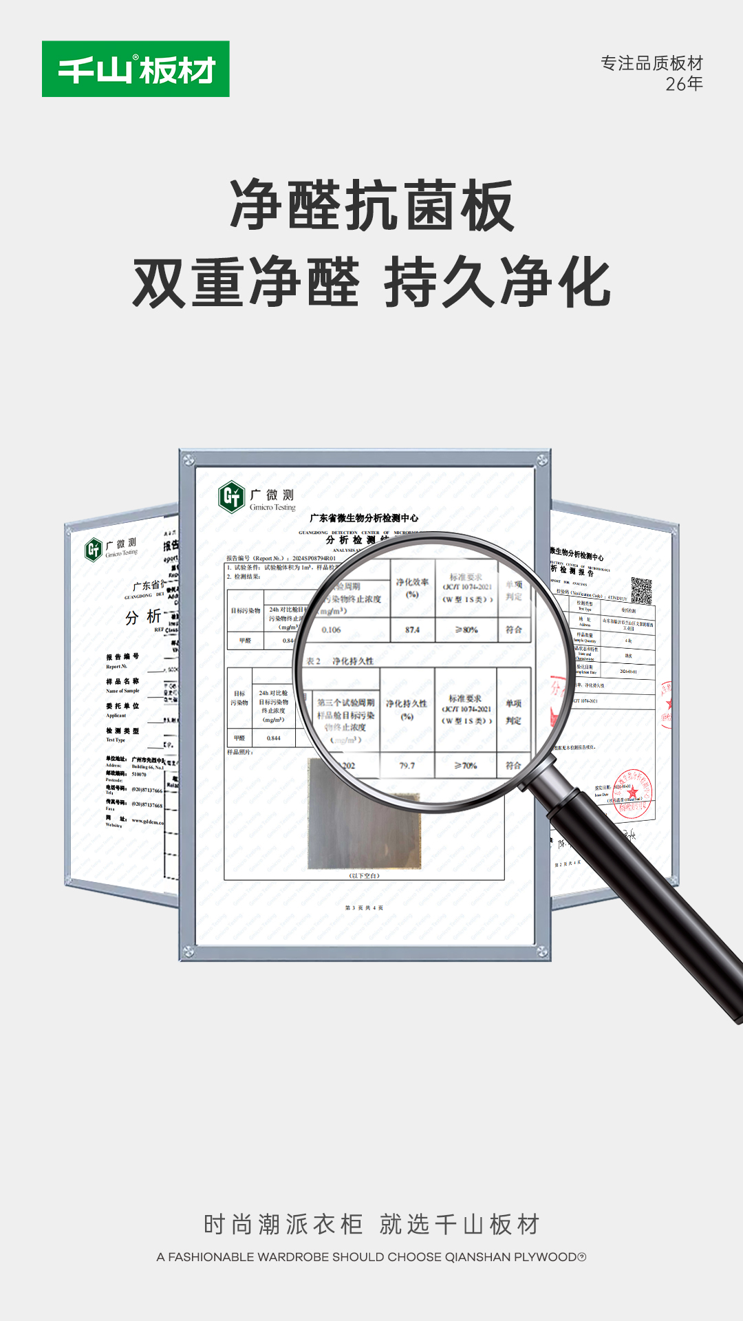 經(jīng)權(quán)威機構(gòu)檢測,凈醛板24h甲醛凈化效率為87.4%,凈化持久性達79.7%,抗(細)菌率、抗病毒活性率>99.99%,減少疾病傳播風(fēng)險,為生活筑起免疫屏障。