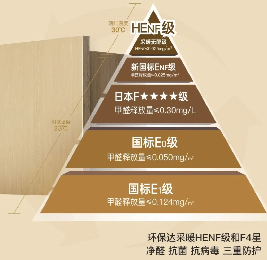 采用無醛MDI膠,生產(chǎn)全過程無醛添加,環(huán)保達采暖HENF級,同時通過F4星環(huán)保標準檢測,以“雙環(huán)保”直擊高環(huán)??腿盒枨?。離子晶體板在北方供暖及南方濕熱環(huán)境條件下,甲醛釋放量仍可保持極低水平。